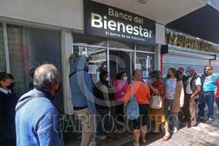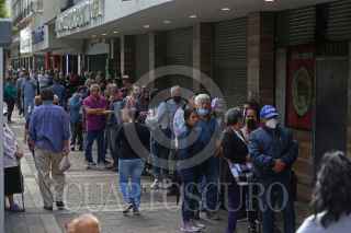 GUADALAJARA, JALISCO, 06JULIO2022.- Largas filas de personas de la tercera edad con tarjeta del bienestar, se registraron a las afueras del Banco del Bienestar ubicado en el Centro de la ciudad, esto para realizar el cobro de su pensión que les otorga el Gobierno Federal. FOTO: FERNANDO CARRANZA GARCIA / CUARTOSCURO.COM