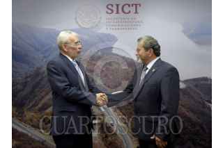 CIUDAD DE MÉXICO, 07JULIO2022.- Por instrucciones del Presidente de México, Andrés Manuel López Obrador, el secretario de Infraestructura, Comunicaciones y Transportes, Ing. Civil Jorge Arganis Díaz-Leal, presentó al Vicealmirante Piloto Aviador Retirado, Carlos Ignacio Velázquez Tiscareño, quien fue designado como nuevo Director General del Aeropuerto Internacional de la Ciudad de México (AICM). El Vicealmirante en retiro sustituye al Ing. Carlos Alfonso Morán Moguel al frente del AICM. A partir de esta fecha inicia el respectivo proceso de entrega-recepción del organismo. FOTO: SCT/CUARTOSCURO.COM