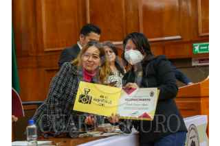 TOLUCA, ESTADO DE MÉXICO, 07JULIO2022.- En el marco del Día del Fotógrafo la fotoperiodistas Victoria Valtierra de la Agencia Cuartoscuro ofreció la conferencia magistral “Retos y alcances de la mujer fotoperiodista en México”, y se realizó la entrega de la presea “Manuel Álvarez Bravo” y reconocimientos a fotoperiodistas del Valle de Toluca por parte de la Asociación de Reporteros Gráficos del Valle de Toluca en la Cámara de Diputados del Edomex. FOTO: CRISANTA ESPINOSA AGUILAR /CUARTOSCURO.COM