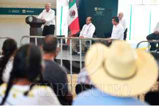 IXTAPA, CHIAPAS, 08JULIO2022.- Andrés Manuel López Obrador, presidente de México, encabezó la Inauguración de la Sucursal Ixtapa del Banco del Bienestar. Lo acompañaron: Víctor Lamoyi Bocanegra, director general del Banco del Bienestar; Carlos Torres Rosas, coordinador general de Programas para el Bienestar; Rutilio Escandón Cadenas, gobernador Constitucional del Estado de Chiapas; Juan Pablo de Botton Falcón, subsecretario de Egresos de la Secretaría de Hacienda y Crédito Público; María del Rocío García, subsecretaria de Bienestar; Luis Cresencio Sandoval González, secretario de la Defensa Nacional; Pamela López Ruiz, directora general del Programa “La Escuela es Nuestra”; Ariadna Montiel, secretaria de Bienestar; Abraham Vázquez Piceno, coordinador nacional del Programa de Becas para el Bienestar Benito Juárez; Marath Bolaños, subsecretario de Empleo y Productividad Laboral y responsable del Programa Jóvenes Construyendo el Futuro. FOTO: PRESIDENCIA/CUARTOSCURO.COM