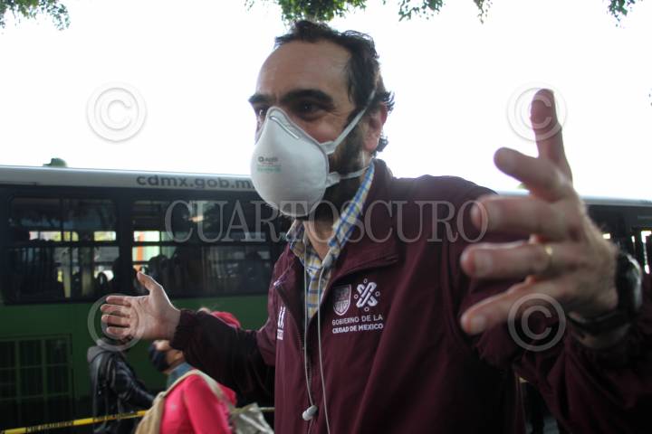 CIUDAD DE MÉXICO, 09JULIO2022.- Guillermo Calderón, director del Metro, y Andrés Lajous, secretario de Movilidad (SEMOVI), acudieron a la revisión del transporte alterno de las estaciones Balderas y Salto del Agua de la Línea 1 del Metro debido a que a partir de hoy estará cerrado por operaciones técnicas durante ocho meses. FOTO: GRACIELA LÓPEZ /CUARTOSCURO.COM