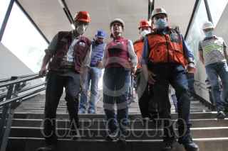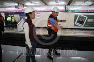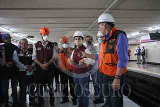 CIUDAD DE MÉXICO, 09JULIO2022.- Claudia Sheinbaum, jefa de Gobierno; Guillermo Calderón, director del Sistema de Transporte Colectivo Metro, y Andrés Lajous, secretario de Movilidad (SEMOVI), encabezaron una supervisión del mantenimiento de los carriles de la estación del metro Balderas de la línea 1, que permanecerá cerrada a partir de hoy. FOTO: GRACIELA LÓPEZ /CUARTOSCURO.COM