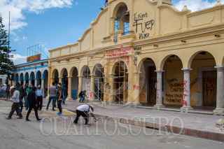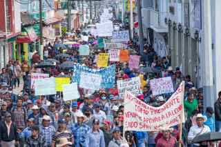 TEOPISCA, CHIAPAS, 09JULIO2022.- Pobladores del municipio realizaron una marcha y manifestación en la cabecera municipal para exigirle al gobierno de Andrés Manuel Lopez Obrador ya no se impongan gobernantes en su comunidad, ya que a raíz del asesinato del presidente municipal en turno se impuso desde el congreso a Luis Valdez. Han denunciado violencia y corrupción la cual ha afectado a sus comunidades. FOTO: ISABEL MATEOS /CUARTOSCURO.COM