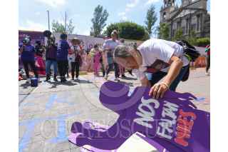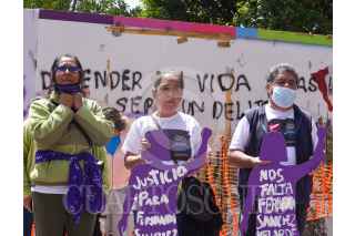 TOLUCA, ESTADO DE MÉXICO, 09JULIO2022.- María Magdalena Velarde, madre de Fernanda Sánchez Velarde, víctima de feminicidio en el año 2014 en el municipio de Cuatitlán Izcalli acompañada por integrantes del Observatorio Ciudadano Nacional del Feminicidio (OCNF) Lorena Gutiérrez, madre de Fátima Quintana, Irinea Buendía mamá de Mariana Lima Buendía y familiares de víctimas de feminicidio se manifestaron frente al edificio del Tribunal Superior de Justicia exigiendo se dicte sentencia vitalicia en contra Led “N” presunto feminicida se la joven de 18 años de edad, y también exigieron justicia para cada uno de los feminicidio en el Estado de México. FOTO: CRISANTA ESPINOSA AGUILAR /CUARTOSCURO.COM