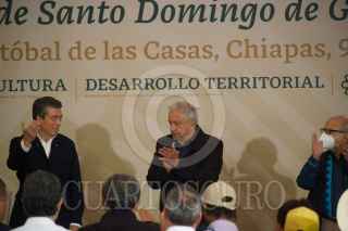 SAN CRISTÓBAL DE LAS CASAS, CHIAPAS, 09JULIO2022.- El gobierno federal encabezado por el presidente Andrés Manuel Lopez Obrador realizan la entrega del Templo y Ex Convento de Santo Domingo de Guzmán, el cual como muchos otros templos y arquitectura colonial y emblemática de la ciudad se dañaron a causa del sismo del pasado septiembre del 2017. Se realizó un reforzamiento estructural para asegurar su permanencia y así abrirse al turismo local, nacional e internacional y que estos puedan apreciar su belleza estilo barroco. FOTO : ISABEL MATEOS /CUARTOSCURO.COM
