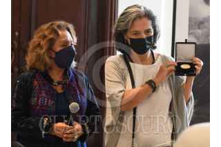 CIUDAD DE MÉXICO, 10JULIO2022.- Como reconocimiento a su amplia trayectoria, la Secretaría de Cultura del Gobierno de México y el Instituto Nacional de Bellas Artes y Literatura (Inbal) rindieron un homenaje a la fotógrafa Lourdes Grobet y entregaron la Medalla Bellas Artes por su trayectoria y legado al arte fotográfico de México, en el marco del homenaje que se realizó a la artista en el Complejo Cultural Los Pinos. Con la representación de la secretaria de Cultura del Gobierno de México, Alejandra Frausto Guerrero, la subsecretaria de Desarrollo Cultural, Marina Núñez Bespalova, comentó que el homenaje a la fotógrafa fue posible gracias al cariño y compromiso de todo el equipo que se convocó para hacer realidad el tener el libro y la exposición que llevan por nombre Laboratorio de Teatro Campesino e Indígena. Medio siglo de historia y donde se da muestra del trabajo fotográfico de la creadora con este grupo comunitario de teatro. FOTO: INBAL/CUARTOSCURO.COM