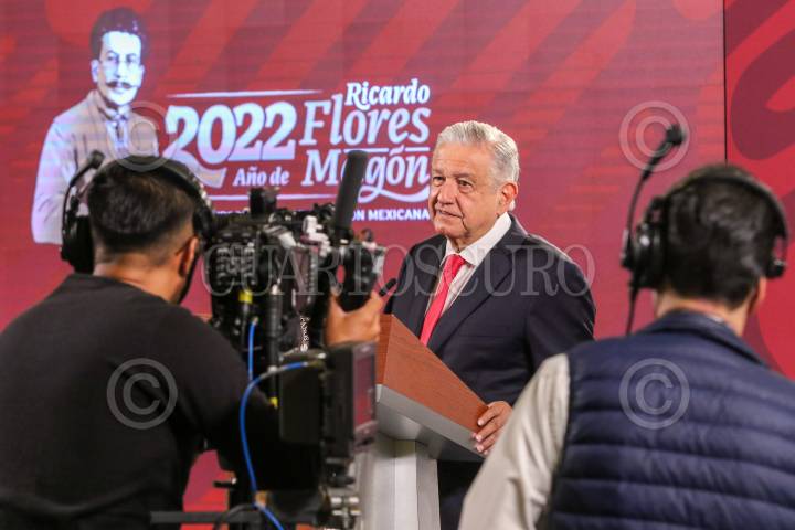 CIUDAD DE MÉXICO, 11JULIO2022.- Andrés Manuel López Obrador, Presidente de México; Ricardo Sheffield Padilla, titular de Profeco, y Diego Prieto, director del INAH, durante la mañanera en la que hablaron del programa de conservación de hallazgos prehispánicos durante los trabajos del Tren Maya. FOTO: MOISÉS PABLO/CUARTOSCURO.COM