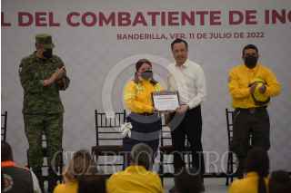BANDERILLA, VERACRUZ, 11JULIO2022.- Mujeres y hombres de la Conafor fueron laureados por su labor como brigadistas, en el marco del Día Nacional del Combatiente de Incendios Forestales. Los premios fueron entregados por el gobernador Cuitláhuac García. FOTO: YERANIA ROLÓN/CUARTOSCURO.COM