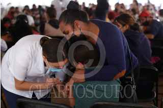 QUERÉTARO, QUERÉTARO, 13JULIO2022.- En la cuidad de Querétaro se lleva a cabo la campaña de vacunación de la primera dosis contra Covid-19 para niños de 5 a 11 años. La vacuna utilizada es la formula de Pfizer exclusiva para niños. La Secretaria del Bienestar calcula vacunar más de 240 mil niños. FOTO: CÉSAR GÓMEZ/CUARTOSCURO.COM