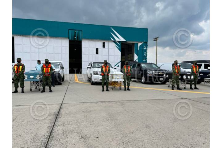 TOLUCA, ESTADO DE MÉXICO, 13JULIO2022.- Llegada al aeropuerto de Toluca de los primeros ocho cuerpos de los migrantes fallecidos dentro de la caja de un tráiler en Texas el pasado 27 de junio. Los cuerpos fueron repatriados por personal de la Secretaría de Relaciones Exteriores (SRE) en coordinación con la Secretaría de la Defensa Nacional (Sedena). FOTO: CUARTOSCURO.COM