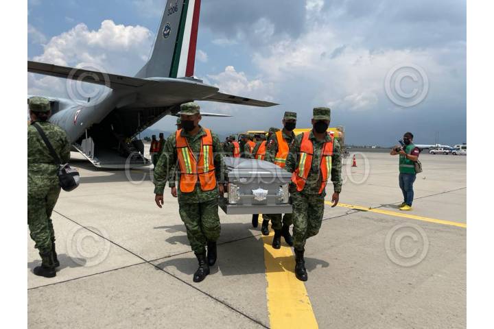TOLUCA, ESTADO DE MÉXICO, 13JULIO2022.- Llegada al aeropuerto de Toluca de los primeros ocho cuerpos de los migrantes fallecidos dentro de la caja de un tráiler en Texas el pasado 27 de junio. Los cuerpos fueron repatriados por personal de la Secretaría de Relaciones Exteriores (SRE) en coordinación con la Secretaría de la Defensa Nacional (Sedena). FOTO: CUARTOSCURO.COM