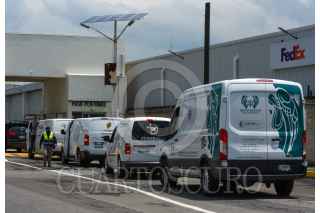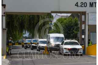 TOLUCA, ESTADO DE MÉXICO, 14JULIO2022.- Llega el tercer vuelo militar procedente de San Antonio Texas al Aeropuerto Internacional de Toluca (AIT) trasladando 7 cuerpos más, de los 26 mexicanos que murieron en un trailer abandonado en Texas; en las inmediaciones del AIT se observaron 6 carrozas fúnebres que vinieron a recoger los cuerpos de los migrantes para llevarlos a los estados de Chiapas, Guanajuato y Veracruz, después de las 14:20 hrs salieron las carrozas para dirigirse a su destino. FOTO: CRISANTA ESPINOSA AGUILAR /CUARTOSCURO.COM
