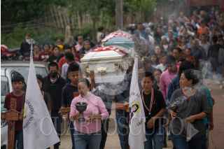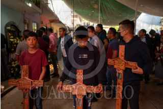 SAN MARCOS ATEXQUILAPAN, VERACRUZ, 14JULIO2022.- Familiares y amigos de Yair, Yovani y Misael Olivares, tres jóvenes migrantes que murieron en un tráiler en San Antonio Texas, el pasado 27 de Junio, realizan cortejo fúnebre y una misa después de haber esperado el traslado de los cuerpos durante 16 días. FOTO: VICTORIA RAZO/CUARTOSCURO.COM