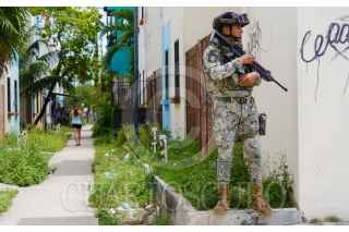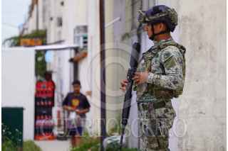 CANCÚN, QUINTANA ROO, 15JULIO2022.- Ante los altos índices de violencia que se registran en el municipio de Benito Juárez, arribaron a Cancún 100 elementos de la Secretaría de Marina (Semar), para sumarse a las autoridades civiles en la lucha contra el crimen organizado; sin embargo, no traen órdenes de disparar, en la imagen elementos de la Marina en la conflictiva colonia llamada villas Otoch Paraíso. FOTO: ELIZABETH RUÍZ/CUARTOSCURO.COM