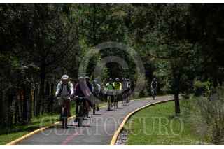 CIUDAD DE MÉXICO, 17JULIO2022.- Javier Ariel Hidalgo Ponce, director de INDEPORTE encabezó la develación de placa por los 18 años de la inauguración de la primera ciclovía en la Ciudad de México con limites en la alcaldía Tlalpan la cual estuvo a cargo en el sexenio que Andrés Manuel López Obrador fue jefe de Gobierno. FOTO: ANDREA MURCIA /CUARTOSCURO.COM