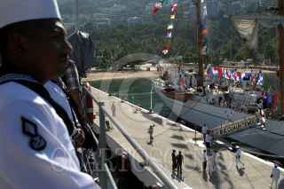 ACAPULCO, GUERRERO 19ENERO2006.- Marineros del Buque Escuela Cuauhtémoc realizaron actividades de exivición durante la entrega del Baston de Mando que se le entrego al presidente de la república, esto en el mulle de la base naval del puerto del estado. FOTO: SAÚL LÓPEZ /CUARTOSCURO.COM