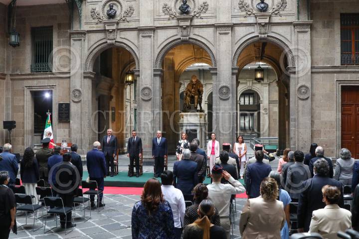 CIUDAD DE MÉXICO, 18JULIO2022.- Andrés Manuel López Obrador, Presidente de México, encabezó la ceremonia del 150 Aniversario Luctuoso de Benito Juárez en Palacio Nacional. Lo acompañaron Claudia Sheinbaum, Alejandro Murat, Adán Augusto López, Beatriz Gutiérrez Müller. FOTO: MOISÉS PABLO/CUARTOSCURO.COM