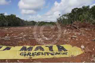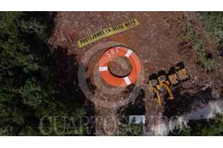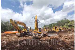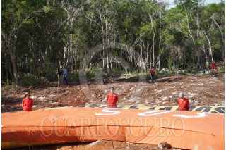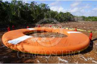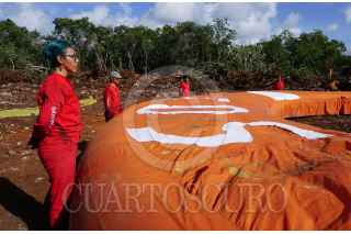 PLAYA DELCARMEN, QUINTANA ROO, 18JULIO2022.- Activistas de Greenpeace se manifestaron pacíficamente en el Tramo 5 del Tren Maya, ubicado entre Playa del Carmen y Tulum, donde usaron un salvavidas gigante con las insignias S.O.S y una manta donde se leía: protejamos la selva maya. FOTO: ELIZABETH RUIZ/CUARTOSCURO.COM