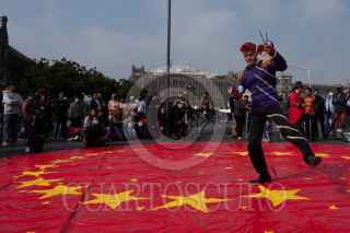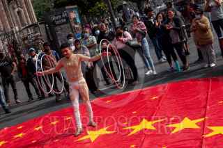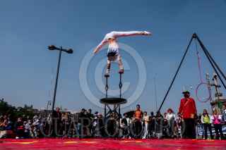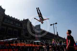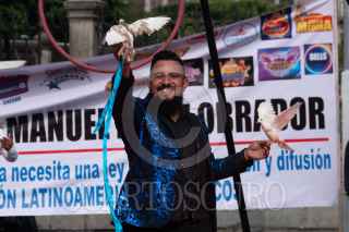 CIUDAD DE MÉXICO, 19JULIO2022.- Integrantes de diversas carpas de circo de la capital del país se manifestaron frente a Palacio Nacional para dar muestra de sus habilidades y con ello pedir al presidente Andrés Manuel López Obrador que emita una ley para la protección de los recintos. Las y los integrantes denuncian que hay ocasiones en que ya no se les permite entrar o colocarse en espacios públicos. FOTO: GALO CAÑAS/CUARTOSCURO.COM