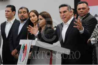 CIUDAD DE MÉXICO, 19JULIO2022.- Alejandro Moreno, presidente nacional y diputado del PRI, realizó una conferencia de prensa para anunciar cambios dentro del Comité Ejecutivo Nacional del partido, donde destacó la presencia de 8 ex gobernadores que se adhieren al CEN de cara a las elecciones de 2023. FOTO: DANIEL AUGUSTO /CUARTOSCURO.COM