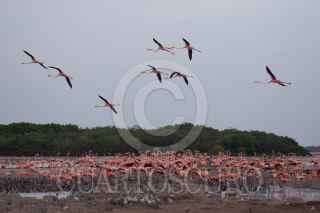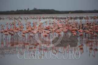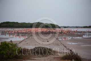 SINANCHE, YUCATÁN, 19JULIO2022.- La Secretaría de Desarrollo Sustentable (SDS) estatal comentó que en la reserva de San Crisanto, en la costa norte del estado, arribaron unos 20 mil flamencos americanos para iniciar la temporada de anidación. La dependencia informó que los flamencos, emblemáticos de la entidad y característicos por su llamativo color rosa, son gregarios, o sea, viven en colonias y cada año, entre abril y mayo, seleccionan un lugar en las reservas del estado para llevar a cabo su anidación. La reserva estatal Ciénagas y Manglares abarca una superficie de más de 54 mil hectáreas en territorios de 11 municipios y es un sitio prioritario para la conservación de ecosistemas, ya que posee una rica diversidad de ambientes, que incluyen dunas, petenes y pastizales, selva baja inundable, así como cuatro tipos diferentes de mangle, lo que alberga y provee alimento a miles de seres vivos, entre ellos aves, peces, mamíferos y reptiles. FOTO: MARTÍN ZETINA /CUARTOSCURO.COM