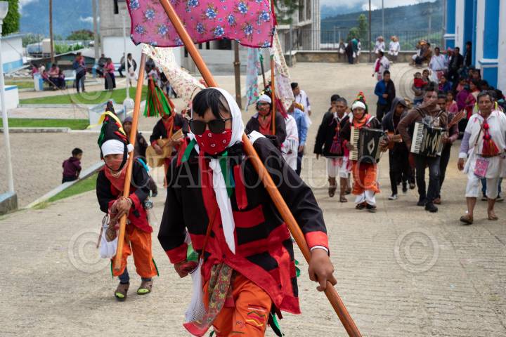 ALDAMA, CHIAPAS, 19JULIO2022.- Autoridades municipales y religiosas de la comunidad de Aldama dieron inicio a la fiesta tradicional en honor a la patrona Santa Maria Magdalena. Las y los pobladores se organizan para todas las tradiciones alrededor de ella, preparando la ropa con que la vestirán las próximos días, música tradicional y la bajada de flores en compañía de habitantes de los diferentes parajes. FOTO: ISABEL MATEOS/CUARTOSCURO.COM