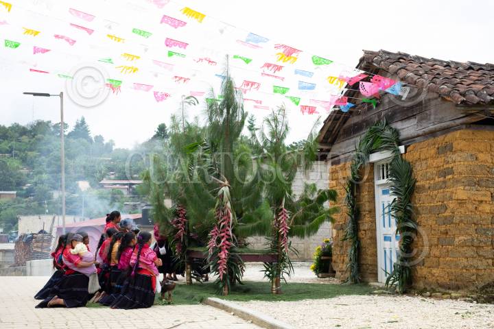 ALDAMA, CHIAPAS, 19JULIO2022.- Autoridades municipales y religiosas de la comunidad de Aldama dieron inicio a la fiesta tradicional en honor a la patrona Santa Maria Magdalena. Las y los pobladores se organizan para todas las tradiciones alrededor de ella, preparando la ropa con que la vestirán las próximos días, música tradicional y la bajada de flores en compañía de habitantes de los diferentes parajes. FOTO: ISABEL MATEOS/CUARTOSCURO.COM