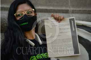 CIUDAD DE MÉXICO, 20JULIO2022.- Integrantes de Greenpeace acudieron a las instalaciones del Suprema Corte de Justicia de la Nación (SCJN) para solicitar el seguimiento al caso Sitilpech y detener la construcción de mega granja porcicola ilegal. FOTO: MARIO JASSO/CUARTOSCURO.COM