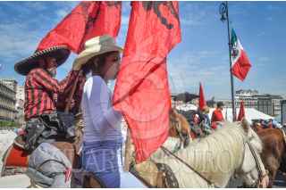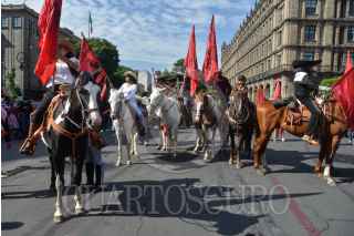CIUDAD DE MÉXICO, 20JULIO2022.- Integrantes del Frente Popular Francisco Villa realizaron una marcha con motivo del 99 aniversario luctuoso de Francisco Villa. La marcha partió del zócalo capitalino rumbo al monumento a la Revolución. FOTO: MARIO JASSO/CUARTOSCURO.COM