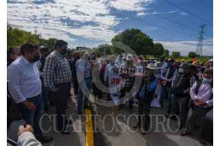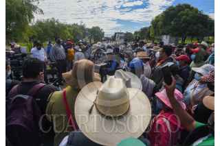 JOCOTITLÁN, ESTADO DE MÉXICO, 20JULIO2022.- Habitantes de municipios de la zona norte del Estado de México realizaron una asamblea con autoridades federales y estatales en las inmediaciones de la empresa Bionatur en donde expusieron cómo han sido afectados en sus cultivos a consecuencia de la utilización de cañones anti granizo y avionetas, procedentes de Ixtlahuaca, Atlacomulco, Jilotepec, Jocotitlán y Acambay llegaron a temprana hora, en esta ocasión no se realizó bloqueo de la carretera Toluca-Atlacomulco, pero continúan su exigencia de que sea cerrada esta empresa que afecta sus cultivos. FOTO: CRISANTA ESPINOSA AGUILAR /CUARTOSCURO.COM