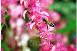 CUERNAVACA, MORELOS, 20JULIO2022.- Una abeja liba la miel de una flor de color rosa en un jardín de la ciudad de Cuernavaca. FOTO: MARGARITO PÉREZ RETANA / CUARTOSCURO.COM