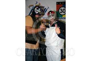 VERACRUZ, VERACRUZ, 20ENERO207.- Los luchadores profesionales de la Triple A; Octagon y Brazo de Plata Jr se presentaron en la Expofutbol Soccer. FOTO: MARCO POLO GUZMÁN /CUARTOSCUTOSCURO.COM