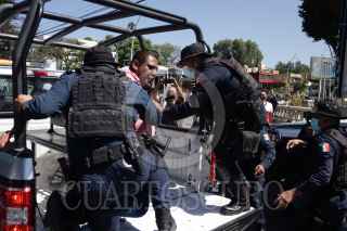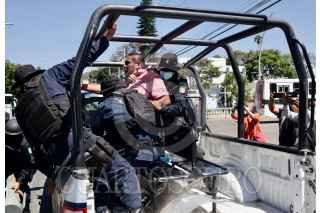 OAXACA, OAXACA 21JULIO2022.- Elementos de la Policía Estatal detuvieron a David Juárez, dirigente de la Coordinadora Nacional Plan de Ayala, y retiraron el bloqueo que mantenían miembros de esta organización en el crucero que forman la calzada Porfirio Díaz y Héroes de Chapultepec en la capital de Oaxaca. El dirigente no estuvo detenido más de una hora, la Coordinadora Nacional Plan de Ayala informó que por intervención de la Comisión Política Nacional y del senador José Narró Céspedes, David Juárez fue puesto en libertad. FOTO: CAROLINA JIMÉNEZ/CUARTOSCURO.COM