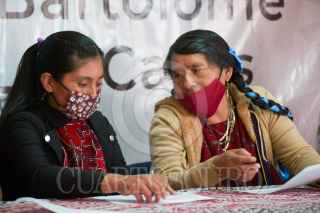 SAN CRISTÓBAL DE LAS CASAS, CHIAPAS, 21JULIO2022.- Representantes de las comunidades de Aldama, Chalchihuitan y el Centro de Derechos Humanos Fray Bartolomé de las Casas relataron la experiencia de la visita de la Comisión Interamericana de Derechos Humanos a sus comunidades en donde en sostuvieron reuniones privadas en las cuales mencionaron que los tres niveles han sido omisos a sus demandas y coinciden en que el peligro es latente a pesar de que la proximidad de la visita de la CIDH hizo que los ataques perpetrados por grupos armados han disminuido. Hoy en día los pobladores de ambas comunidades denuncian desplazamiento forzado intermitente y miedo por su integridad, así como afectaciones físicas, emocionales y sociales. FOTO: ISABEL MATEOS /CUARTOSCURO.COM