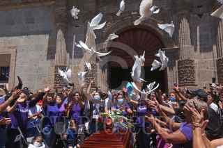 ZAPOPAN, JALISCO, 21JULIO2022.- Este medio día en la basílica de Zapopan, se llevo a cabo la misa de cuerpo presente de Luz Raquel Padilla, quien fue victima de feminicidio en días pasados, su agresor la roció con alcohol y después la quemo viva. FOTO: FERNANDO CARRANZA GARCIA / CUARTOSCURO.COM