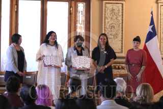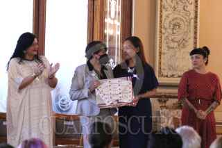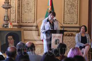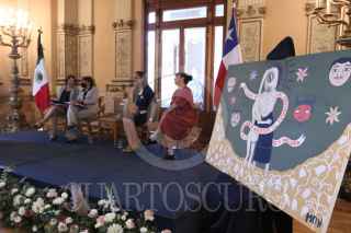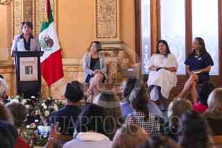 TLAXCALA, TLAXCALA, 21JULIO2022.- Delfina Gómez, secretaria de Educación Pública; Alejandra Frausto, secretaria de Cultura; Verónica Rocha Ormeño, encargada de negocios de la Embajada de Chile; la cantante Mon Laferte, y Krist Naranjo, gobernadora y presidenta del Consejo Regional de Coquimbo, conmemoraron los 100 del legado de Gabriela Mistral en México. FOTO: SEP/CUARTOSCURO.COM