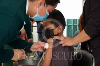 SAN CRISTÓBAL DE LAS CASAS, CHIAPAS, 22JULIO2022.- Continuan activos los centros de vacunación para niños y niñas de 5 a 11 años contra la enfermedad causada por el Covid 19. En la Unidad de Medicina Familia número 17 (IMSS) el personal del Instituto Mexicano del Seguro Social atiende y aplica la vacuna a niños y niñas que acuden al centro acompañados por sus padres. FOTO: ISABEL MATEOS /CUARTOSCURO.COM