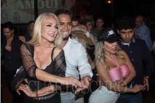 CIUDAD DE MÉXICO, 22JULIO2022.- Las actrices mexicanas: Olivia Collins y Anna Ciocchetti, junto a integrantes del elenco de "Busco al hombre de mi vida, marido ya tuve" participaron en la clase de bachata realizada en un restaurante de la colonia condesa. FOTO: MARIO JASSO/CUARTOSCURO.COM