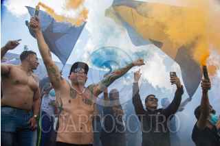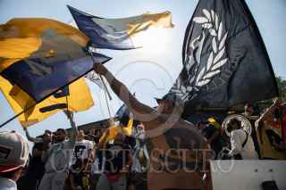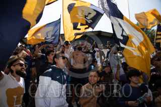 CIUDAD DE MÉXICO, 23JULIO2022. Un grupo de animación acudió a las instalaciones de Cantera del Club Universidad Nacional para dar la bienvenida al nuevo refuerzo de Pumas, Dani Alves. FOTO: EDGAR NEGRETE/CUARTOSCURO.COM