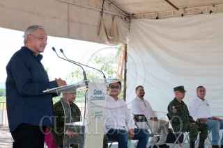 RUÍZ, NAYARIT, 23JULIO2022.- Andrés Manuel López Obrador, presidente de México, durante la Supervisión de la Construcción del Canal Centenario en el Sifón del Canal Centenario en Ruiz, Nayarit. Lo acompañaron: Ricardo Trevilla Trejo, jefe del Estado Mayor Conjunto de la Defensa Nacional; Aarón Mastache Mondragón, subdirector general de Infraestructura Hidroagrícola de la Comisión Nacional del Agua; Iván Hernández Uribe, ingeniero residente de la Secretaría de la Defensa Nacional; Rito Alfonso Galván Zermeño, presidente municipal de Rosamorada y Ernesto Romero Cárdenas, director general del Organismo de Cuenca Lerma Santiago Pacífico. FOTO: PRESIDENCIA/CUARTOSCURO.COM