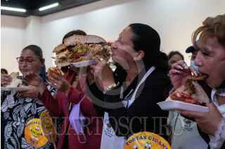 CIUDAD DE MÉXICO, 25JULIO2022.- Evelyn Parra Álvarez, alcaldesa de Venustiano Carranza, encabezó conferencia y corte de torta gigante como parte de la conferencia para dar a conocer detalles de la próxima feria de la Torta en la explanada de la alcaldía que se llevará a cabo del 3 al 7 de agosto. FOTO: ANDREA MURCIA /CUARTOSCURO.COM