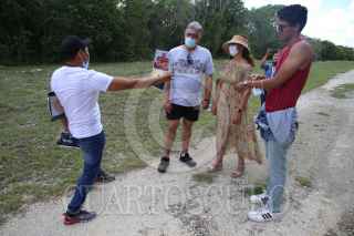 MÉRIDA, YUCATÁN, 25JULIO2022.- Después de llegar a un acuerdo con los ejidatarios de Chablekal y tras cinco meses de permanecer cerrada, este lunes reabrió sus puertas la zona arqueológica de Dzibilchaltún. De esta forma, turistas locales, nacionales y extranjeros podrán apreciar la arquitectura de las construcciones que conforman Dzibilchaltún como es el Templo de las 7 muñecas, sin embargo, se indicó que tanto el museo como el cenote sagrado seguirán cerrados al público. El delegado del INAH en Yucatán, José Arturo Chab Cárdenas, indicó que la reapertura se logró tras alcanzar un acuerdo con los ejidatarios de Chablekal, quienes mantenían el sitio clausurado en espera del pago del gobierno federal por la expropiación de esas tierras. "El pago del anticipo por 30 millones de pesos ya se les entregó a los ejidatarios y esto permitió la reapertura del acceso y la entrega de la zona y eventualmente la adquisición de este polígono", comentó. El conflicto fue solucionado con la firma de un convenio de ocupación previa con el INAH, en el cual el instituto federal se compromete a adquirir el terreno. La ciudad maya, con más de 12 siglos de historia, tuvo que recibir trabajos de chapeo y limpieza, por el tiempo que se mantuvo cerrado y se espera que pronto recupere su número de visitantes anuales, que oscilan entre los 150 mil y los 180 mil. FOTO: MARTÍN ZETINA/CUARTOSCURO.COM