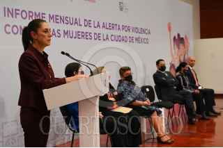 CIUDAD DE MÉXICO, 25JULIO2022.- Claudia Sheinbaum, jefa de gobierno de la capital, acompañada por Ernestina Godoy, fiscal general de la ciudad, encabezaron el Informe de Resultados de la Alerta por Violencia contra las Mujeres, en donde destacaron la nueva herramienta para denunciar, en colaboración con el C5, se implementó el *765, donde podrán reportar cualquier acto de violencia en su contra. FOTO: DANIEL AUGUSTO /CUARTOSCURO.COM