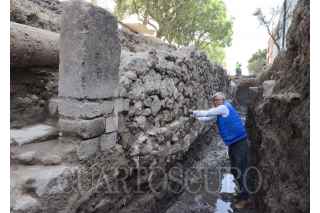 Un equipo arqueológico del Instituto Nacional de Antropología e Historia (INAH) registra un segmento de aproximadamente 20 metros de longitud de un muro novohispano, posiblemente del siglo XVIII, en el arroyo vial de la calle Ignacio Comonfort, una de las más transitadas del populoso barrio de La Lagunilla, en el Centro Histórico de Ciudad de México. La Secretaría de Cultura del Gobierno de México, a través del INAH, registró el descubrimiento de dicho elemento arquitectónico, que se halló en buen estado de preservación durante la supervisión que se realiza en este polígono de alto potencial arqueológico e histórico debido al desarrollo de obras de infraestructura pública. Desde hace más de un mes, un equipo de arqueólogos sigue los trabajos de las cuadrillas de la Secretaría de Obras y Servicios y del Sistema de Aguas de la Ciudad de México (Sacmex), para la renovación de pavimentos, rehabilitación de alumbrado público y sustitución de drenaje, entre otros servicios. El coordinador del salvamento arqueológico, Juan Carlos Equihua Manrique, explica que las tareas de sustitución de drenaje han permitido bajar a 2.50 metros de la superficie y encontrar contextos arqueológicos más antiguos y sin perturbaciones, tal como sucedió con este muro colonial localizado en inmediaciones del Centro Social y Deportivo Guelatao. FOTO: INAH/CUARTOSCURO.COM