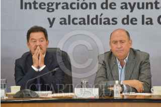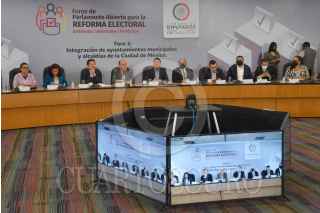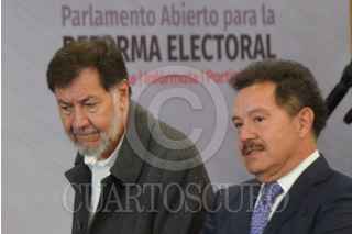 CIUDAD DE MÉXICO, 26JULIO2022.- Rubén Moreira, diputado del PRI y presidente de la Junta de Coordinación Política (Jucopo), e Ignacio Mier, diputado y coordinador de Morena, encabezaron la inauguración de los foros del Parlamento Abierto para la Reforma Electoral, con la mesa "Integración de ayuntamientos municipales y alcaldías de la Ciudad de México" realizada en el salón del protocolo del recinto legislativo de San Lázaro. FOTO: MARIO JASSO/CUARTOSCURO.COM