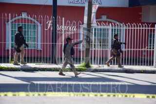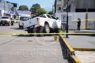 TAPACHULA, CHIAPAS, 26JULIO2022.- En la avenida palmas y central calle oriente suscitó una balacera, dos sujetos abordo de una motocicleta realizaron disparo en contra de una camioneta quien terminó chocando con un automóvil que se encontraba estacionado afuera del Hospital ISSSTE, en lugar fue acordonado por las corporaciones policiacas y encontraron 12 cartuchos percutidos y un cargador de la pistola. El conductor embistió la motocicleta donde circulaban los ampones.Los maleantes robaron una camioneta para poder escapar del lugar, las autoridades policiacas implementaron un operativo para detener los infractores, en la colonia bosques las paloma encontraron el automóvil abandonado. FOTO: DAMIÁN SÁNCHEZ/CUARTOSURO.COM