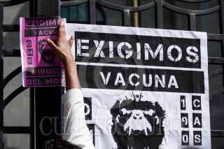 CIUDAD DE MÉXICO, 26JULIO2022.- Organizaciones en defensa de las personas con VIH, así como integrantes de la comunidad LGBTTTIQPA+ se manifestaron en las inmediaciones de la Secretaría de Salud para exigir a las autoridades del sector más vacunas, prevención y tratamiento para las personas VIH Positivo y atención a los casos de viruela sísmica. FOTO: GALO CAÑAS/CUARTOSCURO.COM