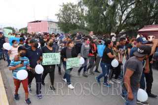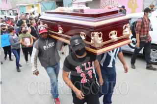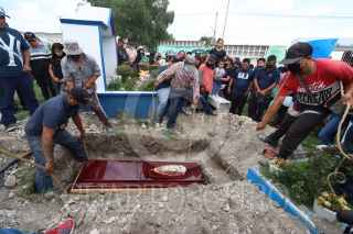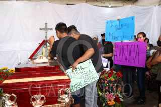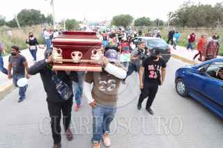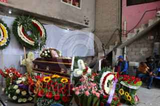 ECATEPEC, ESTADO DE MÉXICO, 26JULIO2022.- Familiares y amigos de Margarita Ceceña; quien presuntamente fue quemada viva por familiares por la disputa de un casa en Cuautla, Morelos, fue velada en la casa de una de sus hermanas y enterrada en el panteón de San Isidro. Los dolientes llevaron pancartas durante la procesión fúnebre con la leyenda de justicia para exigirle a las autoridades la detención de todos los implicado en el feminicidio. FOTO: ROGELIO MORALES/CUARTOSCURO.COM