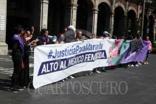 CUERNAVACA, MORELOS, 27JULIO2022.- Feministas del estado protestaron y exigieron justicia en la plaza de armas por el caso de Margarita Ceceña que fue atacada por cuatro de sus familiares en la población ex Hacienda el Hospital, en el municipio de Cuautla el pasado primero de julio. Margarita Ceceña de 30 años y madre de tres hijos fue atacada por unos familiares con los cuales, presuntamente, tenia una disputa por la propiedad que habitaba. Margarita tenia quemaduras de segundo y tercer grado en mas del 70 % del cuerpo, lo que después de 24 días le provoco la muerte. La Fiscalía de Morelos inicio una averiguación por estos hechos y emitió cuatro fichas de búsqueda en contra de María de la Cruz “N”, Nataly “N”, Leobardo “N” y Primitivo “N” FOTO: MARGARITO PÉREZ RETANA / CUARTOSCURO.COM