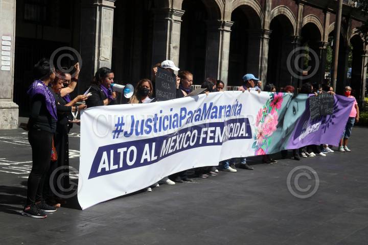 CUERNAVACA, MORELOS, 27JULIO2022.- Feministas del estado protestaron y exigieron justicia en la plaza de armas por el caso de Margarita Ceceña que fue atacada por cuatro de sus familiares en la población ex Hacienda el Hospital, en el municipio de Cuautla el pasado primero de julio. Margarita Ceceña de 30 años y madre de tres hijos fue atacada por unos familiares con los cuales, presuntamente, tenia una disputa por la propiedad que habitaba. Margarita tenia quemaduras de segundo y tercer grado en mas del 70 % del cuerpo, lo que después de 24 días le provoco la muerte. La Fiscalía de Morelos inicio una averiguación por estos hechos y emitió cuatro fichas de búsqueda en contra de María de la Cruz “N”, Nataly “N”, Leobardo “N” y Primitivo “N” FOTO: MARGARITO PÉREZ RETANA / CUARTOSCURO.COM